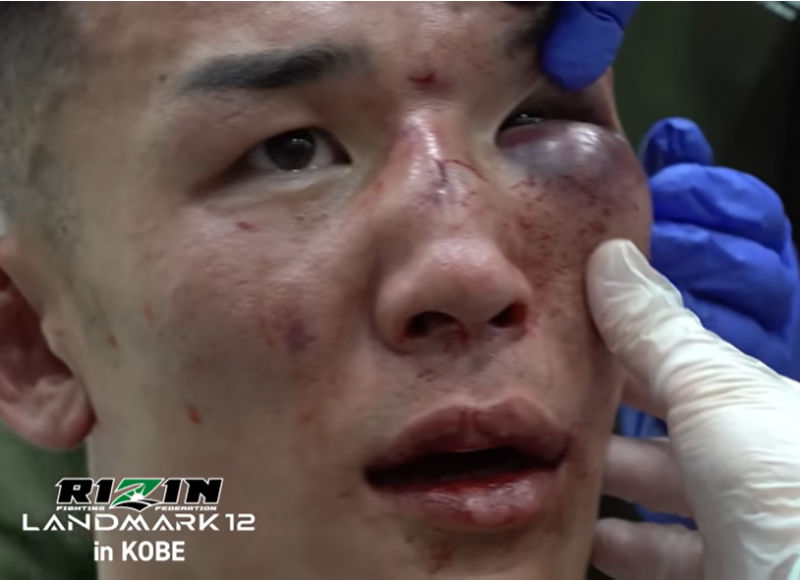 萩原の赤黒く腫れた左目(RIZIN公式YouTubeチャンネル)
