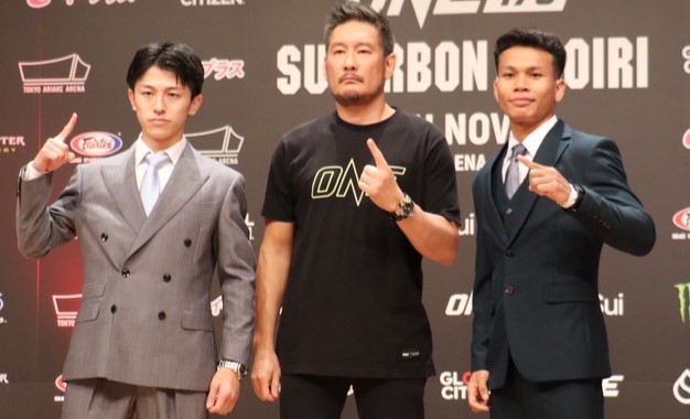 吉成(左)とヌンスリン(右)のアトム級ムエタイ世界王座を争う