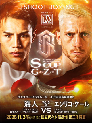 11月24日(月・祝)、東京・国立代々木競技場第二体育館で開催される『~SHOOT BOXING 40th Anniversary~S-cup×GZT 2025』に、SB世界スーパーウェルター級王者・海人(TEAM F.O.D)が出場することが決定した。