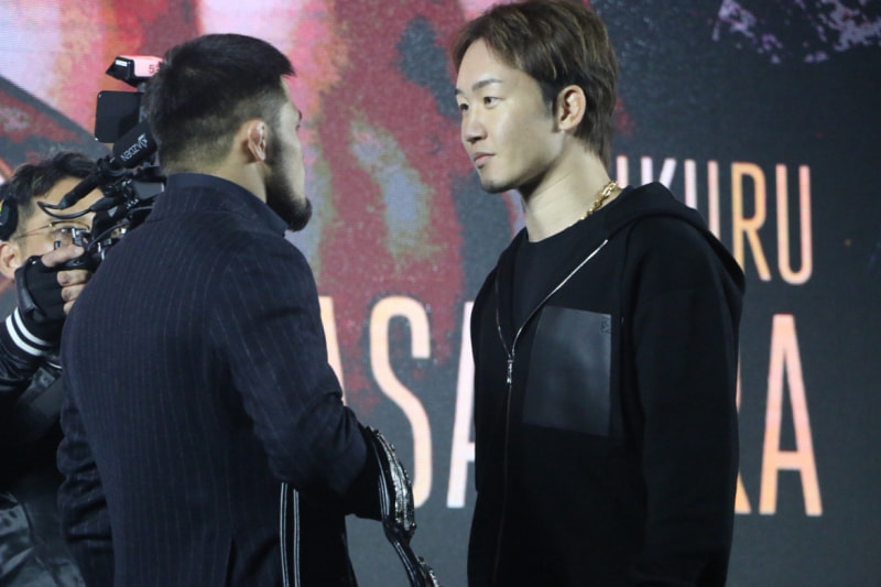朝倉(右)とシェイドゥラエフが睨み合う