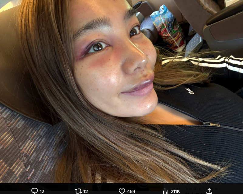 試合2日後の顔は腫れが少し引いていた(@mzmzmz_1121)