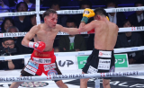 - 比嘉(左)が堤(右)に強烈な左を打ち込む!