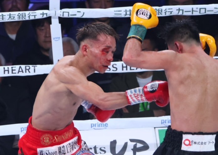 流血しながらも攻める堤