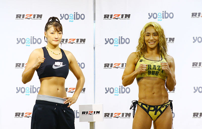 RENA(左)と山本美憂の前日計量(21年11月)