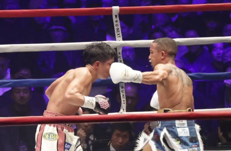 サンティアゴのパンチが岩田の顔にクリーンヒット