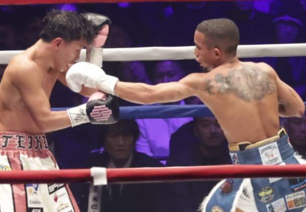 左のパンチを飛ばすサンティアゴ