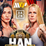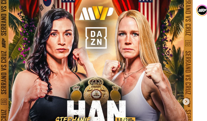 13年ぶりにボクシング復帰するホルム(右)は王者ハン(左)のタイトルに挑戦する