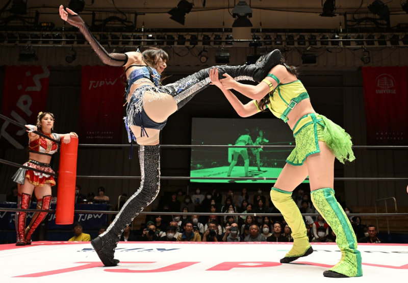 上福ゆき、長身を活かしたキックで攻める!(東京女子プロレス)