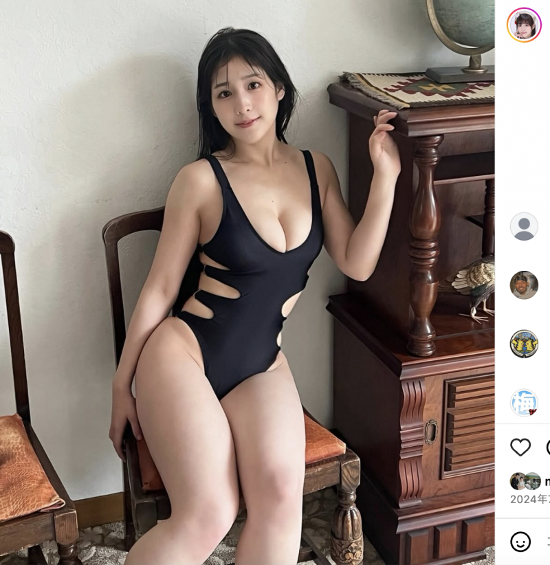 黒水着姿の上原わかな(@wakanauehara_officialより)