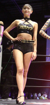 - NARIAGARIラウンドガールを務めた斎藤恭代