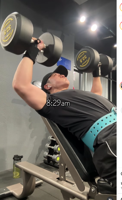 インクラインダンベルプレスする西野(@korochiki_nishino)