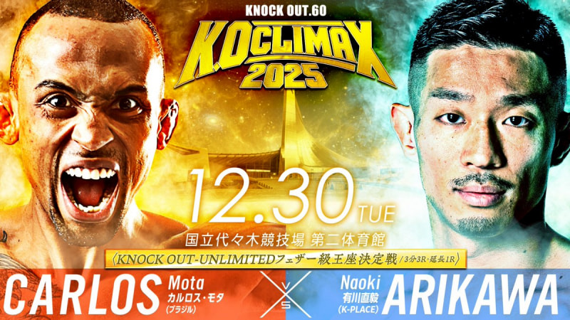 KNOCK OUT-UNLIMITEDフェザー級王座決定戦でカルロス・モタ(ブラジル)と有川直毅(K-PLACE)が激突