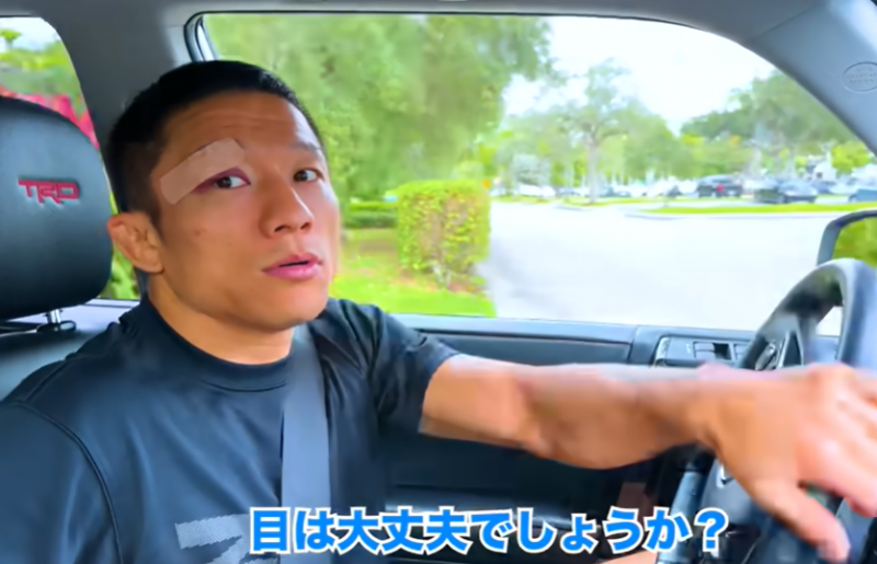 堀口は右目上に大きな絆創膏を貼っていた。もうすぐ試合だが心配の声も(『堀口恭司 Kyoji Horiguchi』YouTubeチャンネル)