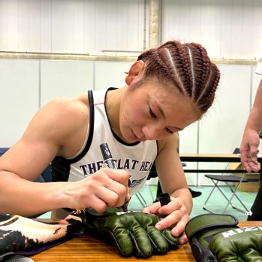 ケイトはグローブにサイン(「KAKEHASHI」オフィシャルサイト)