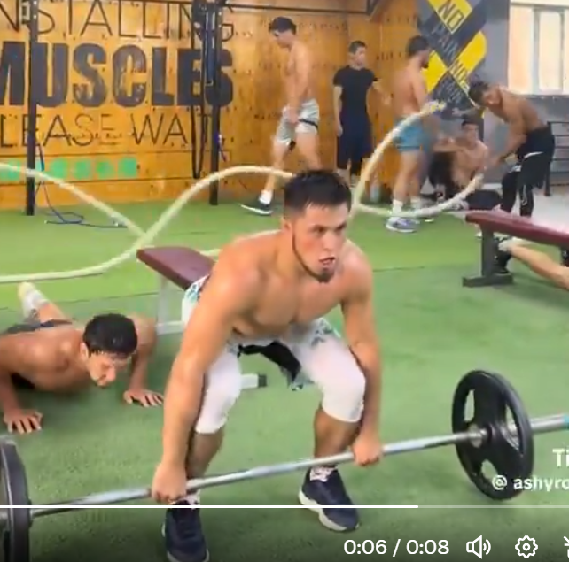スナッチでバーベルを一気に頭上へ挙げるシェイドゥラエフ(@MMA_INFORM)