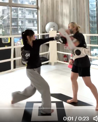 ハーフ美女がキックトレで鋭い蹴りとパンチ!「初心者とは思えない」ファン称賛