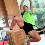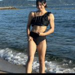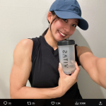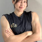 ムキ子は、肩出しノースリーブでファンからの質問に答えた(@(@jchandayo__03))