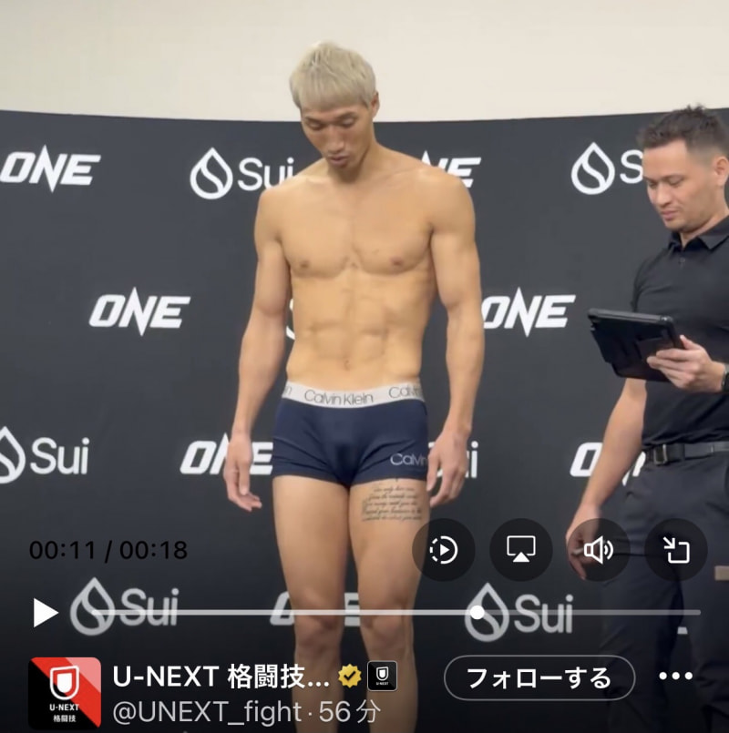 暗い表情で計量失敗が告げられる(UNEXT格闘公式Xより)