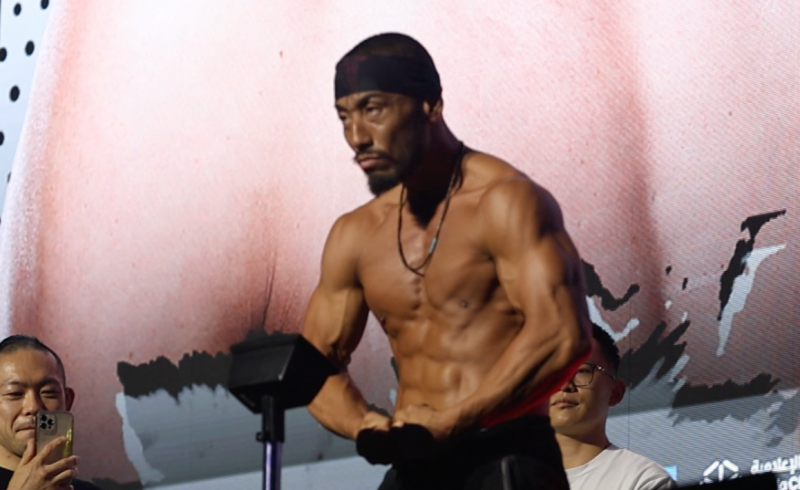 手塚が計量でムキムキの肉体を披露