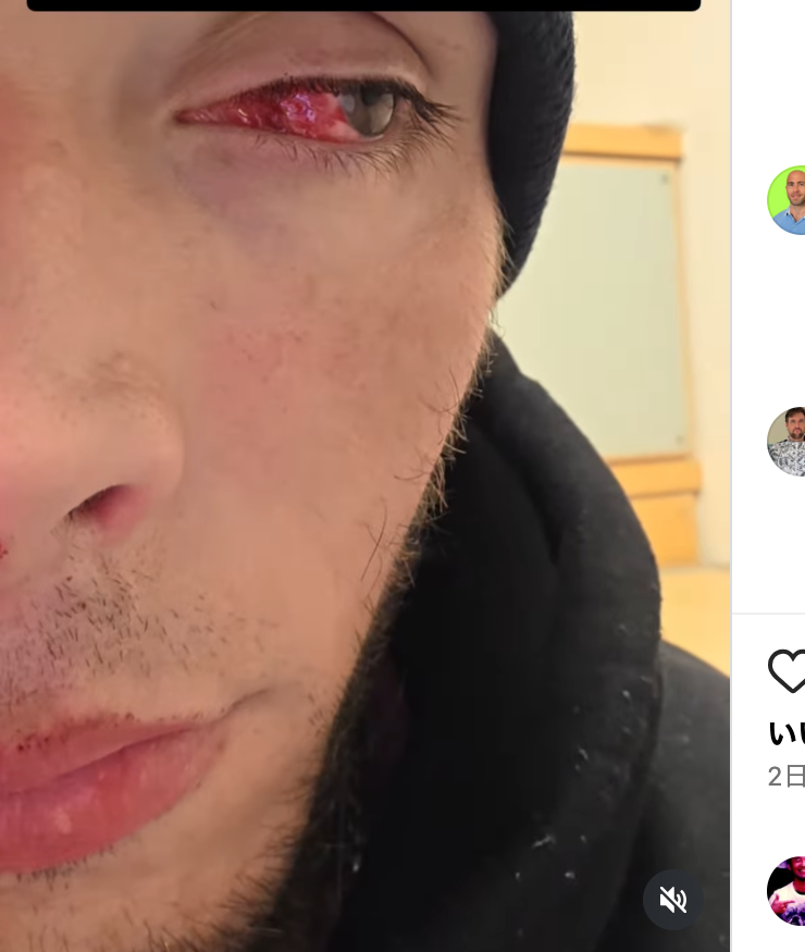 アイポークされた右目(※映像は反転しています)@giannettimmaより