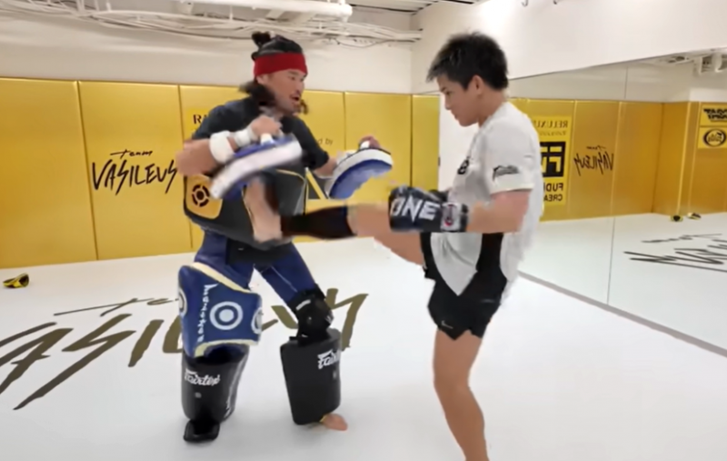 与座が試合直前に閃いた右の三日月蹴り(『与座優貴 Yoza Yuki / official』YouTubeチャンネル)