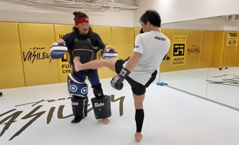 左右で的確に相手のレバーを狙う与座の三日月蹴り(『与座優貴 Yoza Yuki / official』YouTubeチャンネル)