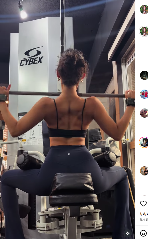背中を鍛える菜々緒(25年5月 @nanao_official)
