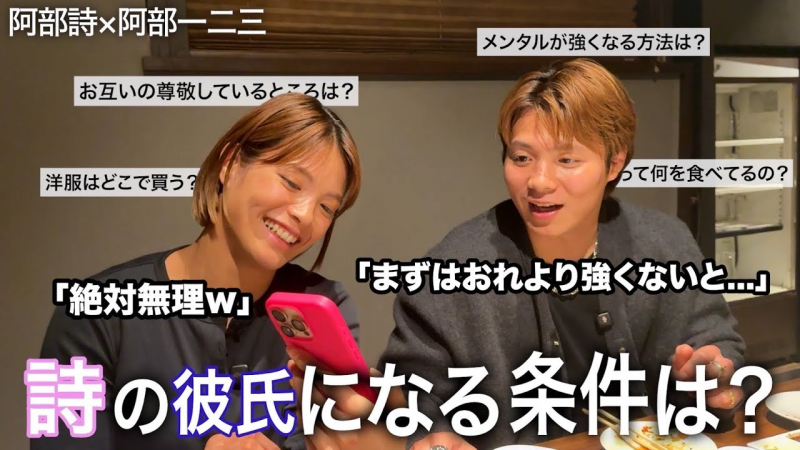 阿部一二三は妹の詩とコラボ動画で対談(『 阿部一二三』YouTubeチャンネルサムネイルより)