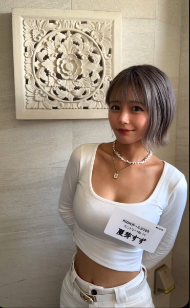 胸の開いた衣装で美腹筋を見せる夏芽すず(@natsume_suzu)