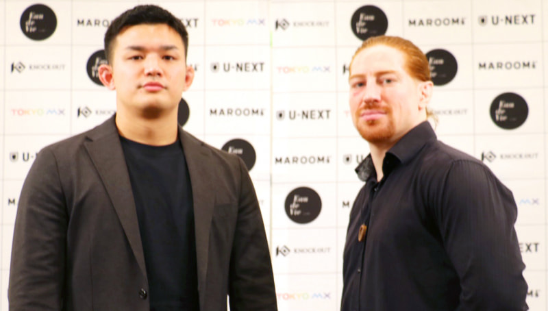 会見に出席した宮原穣(左)とスパイク・カーライル(右)