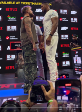 - 両者目線を一切外さずに闘志を燃やす(@jakepaul)