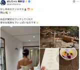 ぱんちゃん璃奈、盛り上がる背筋に純白ドレス!“結婚”匂わす投稿にファン騒然