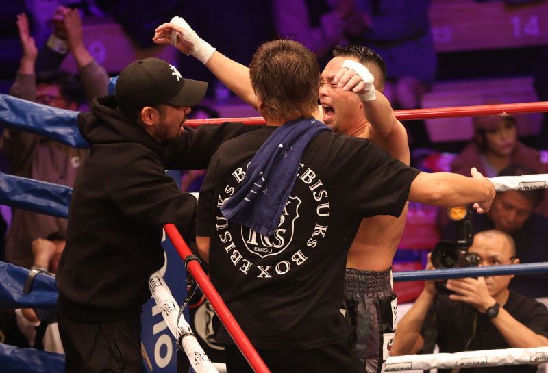 セコンドと喜ぶ緑川