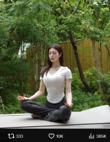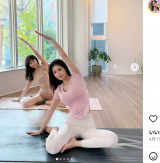 - ピンクのTシャツに白いレギンスのトレーニング姿の阿部(@i.am_natsuki_)