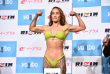- 前日計量、マッスルポーズを決めるエマリー