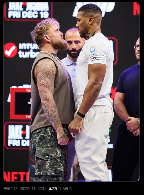 ポール(左)とジョシュアのフェイスオフ(@jakepaul)