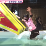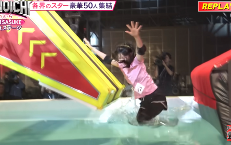 シーソーへ飛び移るも池へ落下(『【TBS公式】SASUKEチャンネル』)