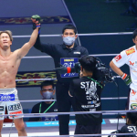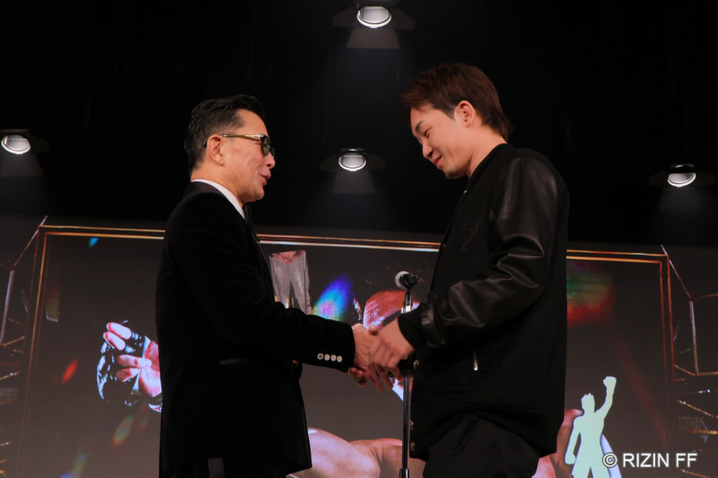 RIZIN榊原代表(左)と朝倉未来(右)が握手