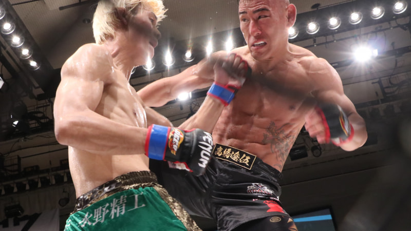 水野(左)がアッパーを放つ