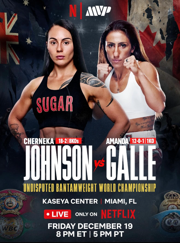 ジョンソンは現IBO女子バンタム級世界王者のアマンダ・ガレと統一王座防衛戦を行う。