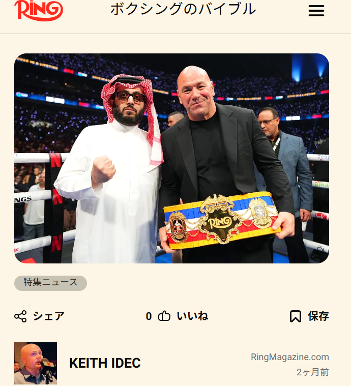 『ザ・リング』マガジン公式ホームページで、Zuffa Boxingを特集した(『ザ・リング』マガジン公式ホームページより)