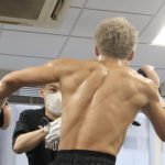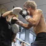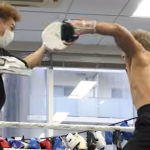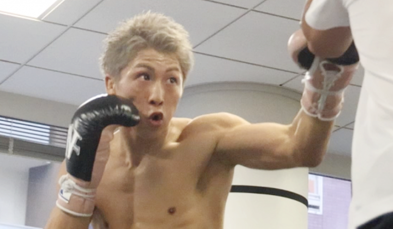 公開練習で強烈なパンチを打ち込む井上尚弥