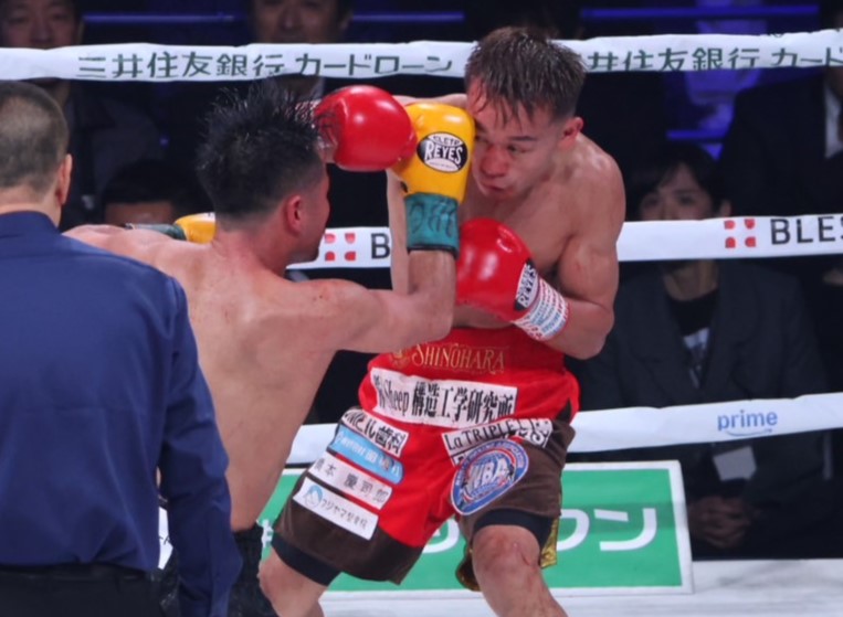 堤(右)も比嘉(左)に洋烈な右をヒットさせる