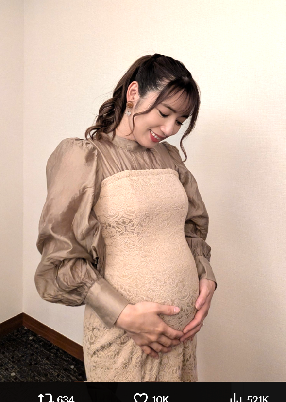 才木がふっくらしたお腹で妊娠を報告した(@saikireika)