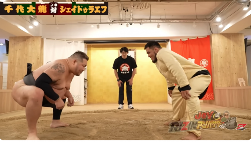 シェイドゥラエフ(右)vs力士の千代大龍で相撲対決