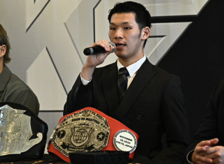 来年1月18日には『P.P.P. TOKYO』で元キックボクサーの前口太尊を挑戦者に迎えての初防衛戦も決まっており、「その防衛戦をしっかりクリアして、その後にムエタイのベルトを獲ったら、多分現役でプロレスとムエタイのベルトを同時に持った人は今までいないと思います。俺はその快挙をまず成し遂げようと思います。そして、2.8プロレスラーがけっこう来ます。勝った後にバトルロイヤルがリングの上で始まるかもしれない。それも楽しみにしていてください」と日本人初?の快挙に向けて力強く意気込んだ。