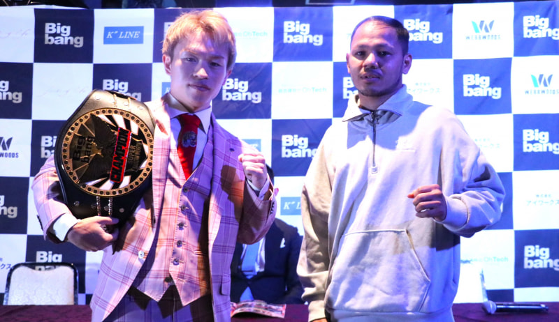 晃貴(左)は元ラジャダムナン王者サンチャイ(右)を迎えて防衛戦を行うこととなった