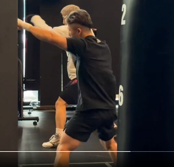 シャドーを行う井上兄弟(奥が尚弥、手前が拓真)(@Turki_alalshikh)