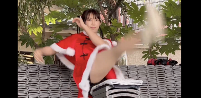 堀江聖夏、年内最後の瓦割りはミニスカサンタ姿でかかと落とし!@mina_horie