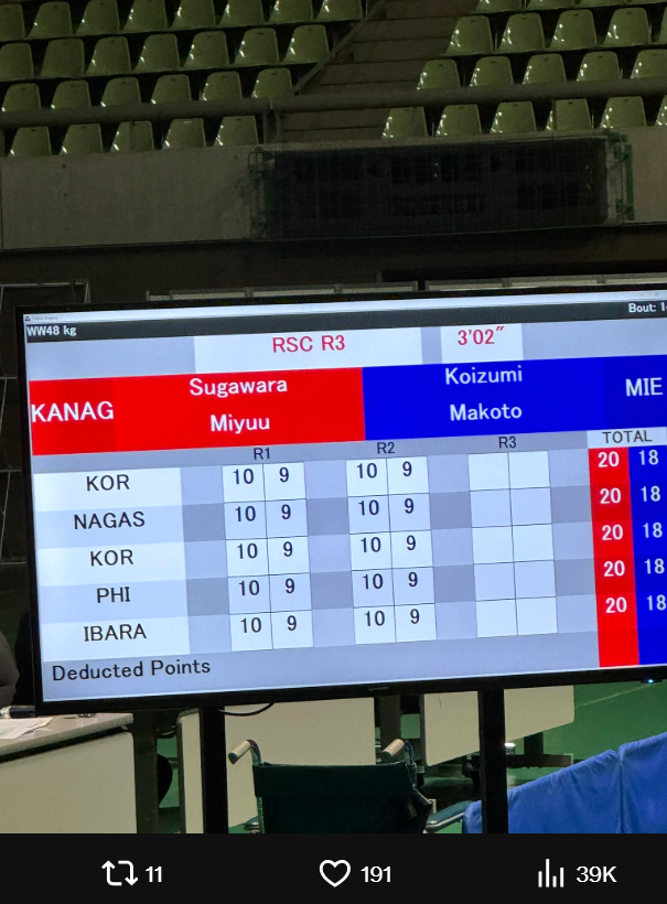 菅原の決勝は2Rまでフルマークでリードしていた(@sei_gs21)